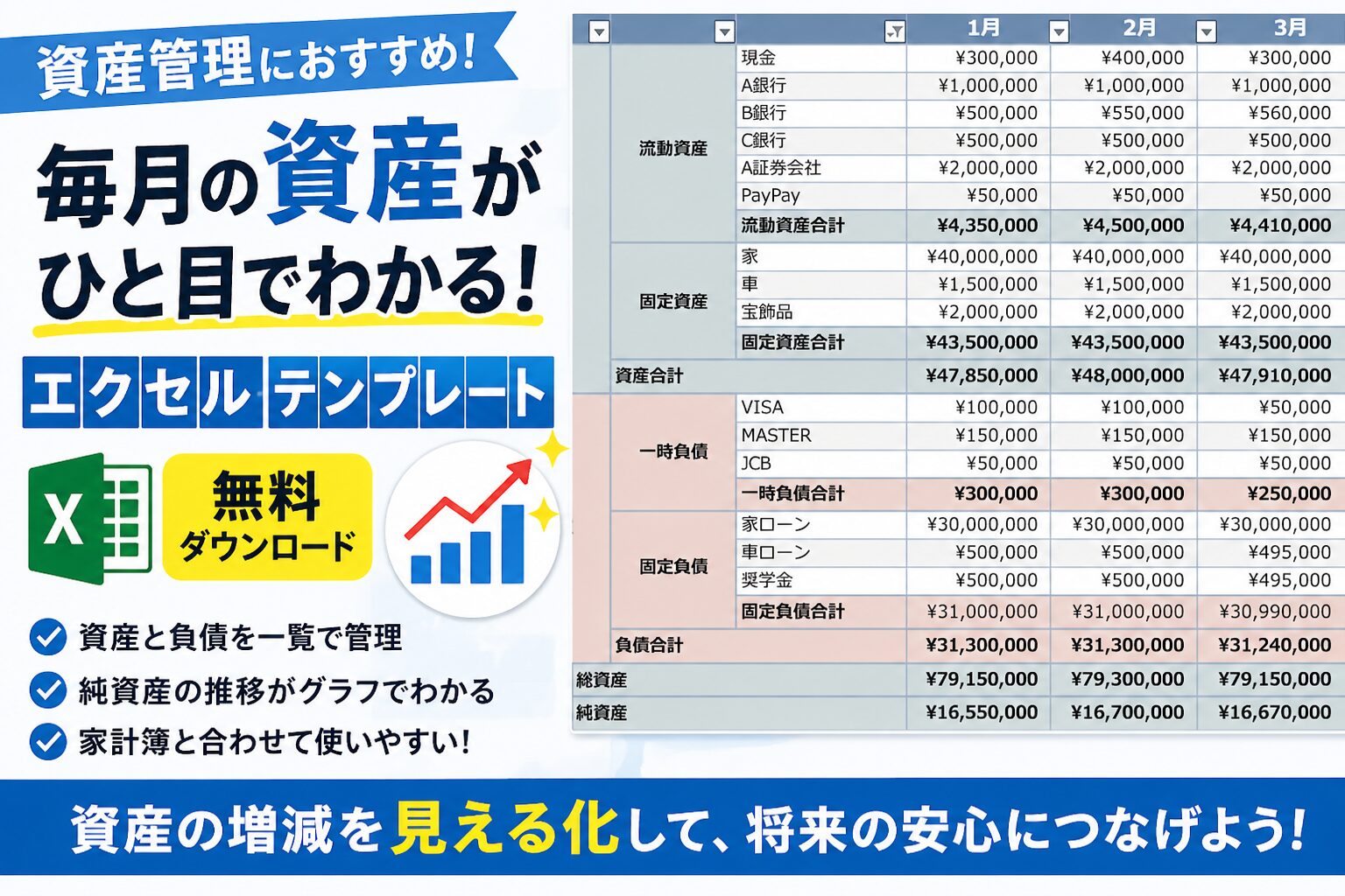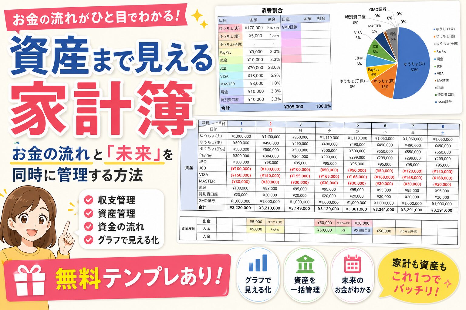 【2026年版】資産まで見える家計簿|お金の流れと「未来」を同時に管理する方法(無料テンプレあり)