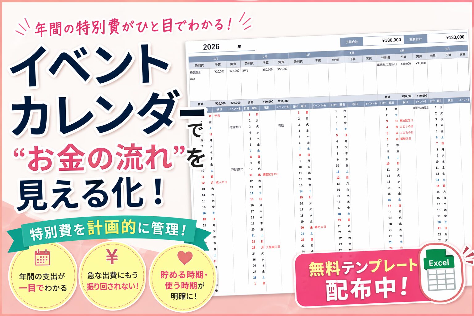 年間の特別費がひと目でわかる!イベントカレンダーで“お金の流れ”を見える化【無料テンプレあり】