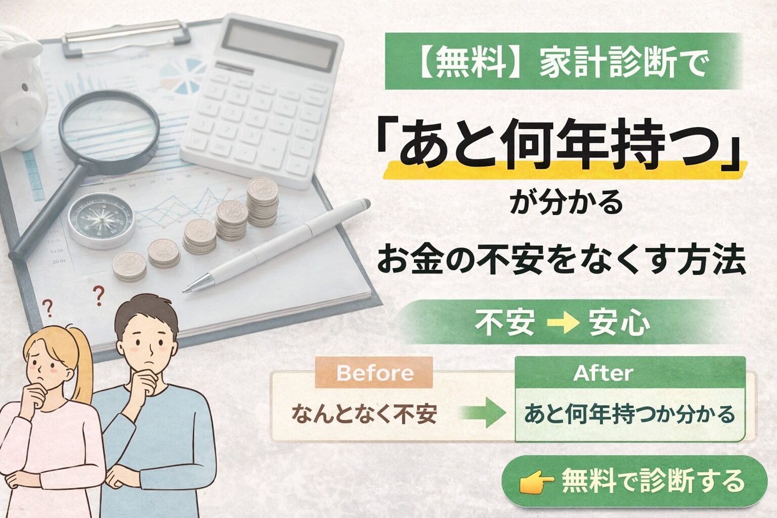【無料】家計診断で「あと何年持つか」が分かる|3分で将来のお金を見える化