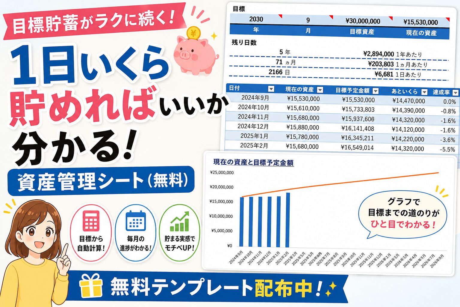目標貯蓄がラクに続く|1日いくら貯めればいいか分かる資産管理シート(無料)