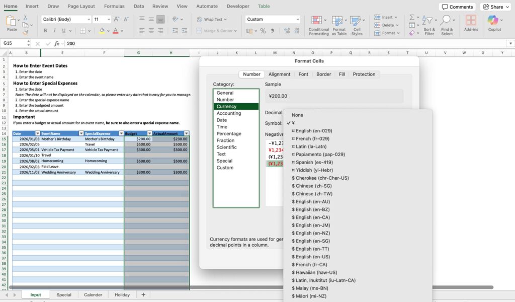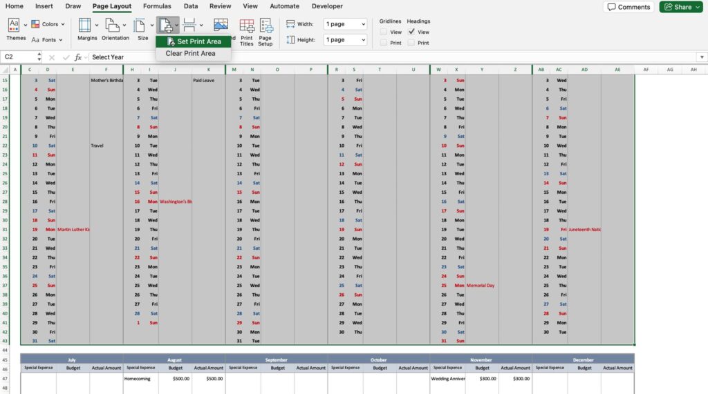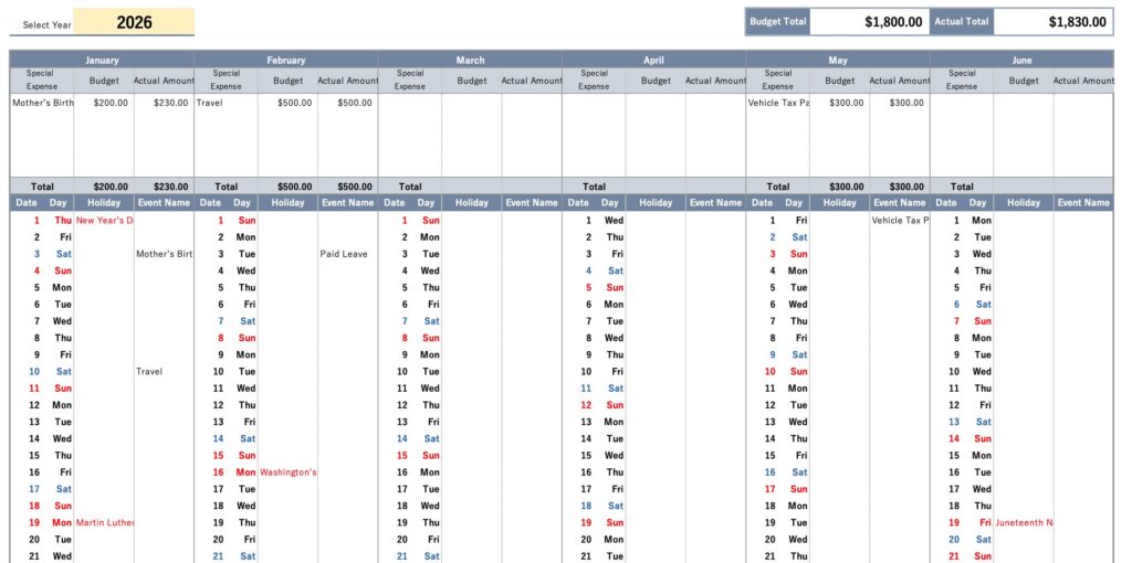 Visualize Your Annual Special Expenses!A Free Excel Budget Calendar for Holidays & Events